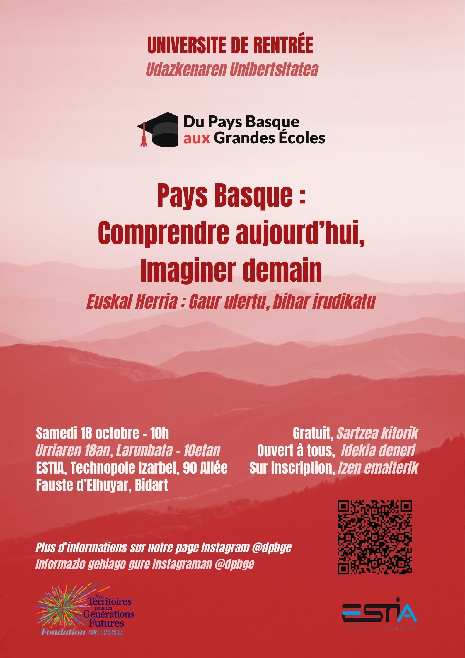 Pour contribuer à la construction et au dynamisme du Pays Basque de demain, nous souhaitons soutenir le retour sur le territoire des diplômés, en promouvant notamment l’entreprenariat au Pays Basque.